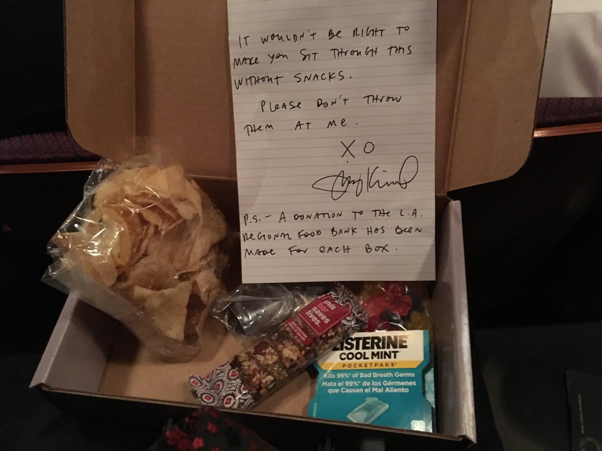 Jimmy Kimmel provided the Oscars crowd with a box containing food and a note from the host.